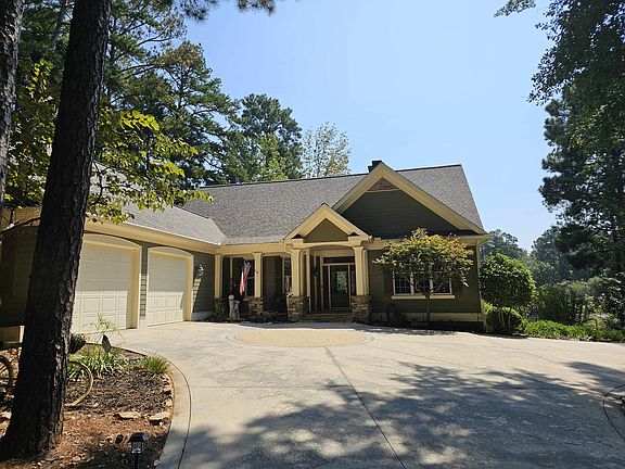 This rare gem within Reynolds Lake Oconee is an entertainers dream! Very private setting to enjoy the great views, fish in the pond or take a dip in the pool shared by only twelve property owners but seldom used! NEW ROOF August 2025. This beautiful home has been remodeled to include a floor to ceiling stone fireplace with built in bookcases and custom glass panels leading to a finished lower level. Primary en suite bedroom on the main level with updated bath including a soaking tub, separate shower, heated floors and walk in closet. Convenient office and formal dining room on the main level along with covered lanai for al fresco dining. Open kitchen offers breakfast area and large grilling deck outside. Large second pantry roughed in for future elevator. Beyond the kitchen leads to half bath and laundry room with sink and shower. Two car garage offers fishing room and bait frig! Walk up stairs lead to huge storage area above. The lower level leads to a billiard area with wet bar and a walk out entertainment room. Multiple sleeping options include an en suite bedroom, third bedroom, full bath and a sleeping quarters room with four built in bunk beds! Sewing room leads to wine room and second laundry area. Lower third garage with work benches and craft room. Beautifully landscaped low maintenance grounds with patio and fire pit plus walking stone paths throughout! LCA maintains most grass areas. Great rent roll potential for investors! Seller is making a golf membership available.