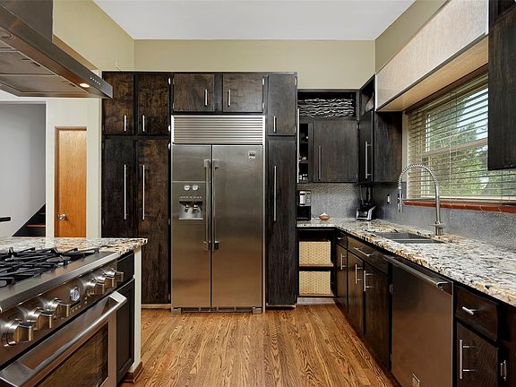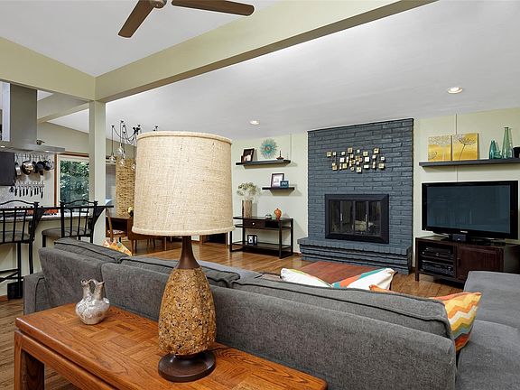 You'll fall in love with this chic MID-CENTURY MODERN home the second you see it! The incredibly well-maintained home has an OPEN FLOOR PLAN main living area with HARDWOODS THROUGHOUT. The kitchen is complete with HIGH-END STAINLESS STEEL APPLIANCES and GRANITE COUNTERTOPS. The bright sunroom with 2nd fireplace acts as an additional living space or dining room. The upstairs offers 3 bedrooms and 2 completely updated bathrooms. The basement is a fantastic entertaining space with its custom-made 5-tap BAR AND POOL TABLE! Escape to the private BEAUTIFULLY LANDSCAPED OASIS in the backyard, designed by a professional landscape architect. The backyard is perfect for BBQs, hot-tubing and hanging out with friends. Backyard also includes a large, fenced-off space for gardening and additional storage. The pool table, 5-tap bar and hot tub are staying. The personality of this cool, mid-mod home is absolutely one-of-a-kind. Come see it in person as it will go fast!