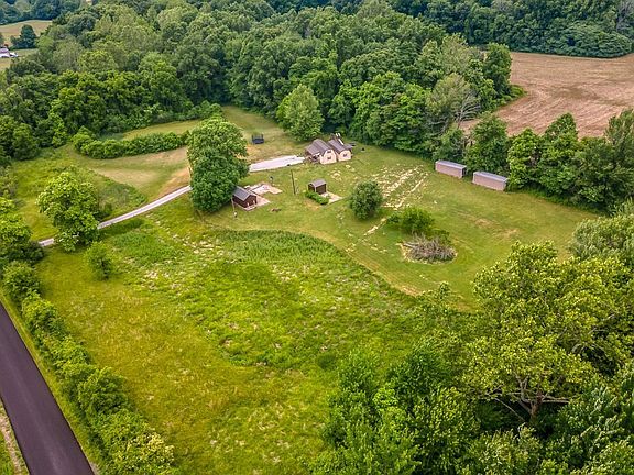 Don't miss this special place in the country!! One with a variety of towering trees, small pond +a rolling 5 acres? How about a small home just 6 years old? And outbuildings for additional storage? Enjoy the peace & quiet of country living. You'll appreciate the easy care laminate flooring, main level owner's suite, upstairs BR2 w/half bath. Lots of space to roam & observe wildlife like deer, turkeys, rabbits & turtles. New septic system and city water. 3/4 of property is fenced. Pretty country paved road access to the property. Beautiful place in the country. 5 days possession