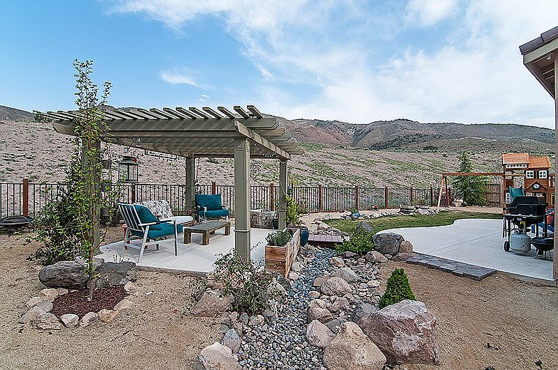 Located at the top of Damonte Ranch where views of the mountains abound and backs up to open space, you'll fall in love as you walk in to this well upgraded home. Come to where the houses are nicely spread apart, long driveways, private backyard... and have space to park your RV. Only 7 years old, this 1-story features hand scraped hardwood floors throughout the living areas and bedrooms, stylish quartz kitchen and bathroom countertops, upgraded tile floors and shower surround in the master bath.