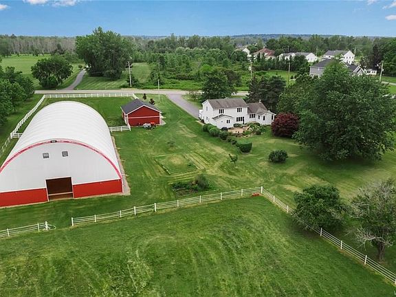 Move right into this beautiful Clarence property on 12+ acres! Features include: Updated kitchen w/Birch candelight cabinetry, corian counters, built-in wine bar, heated flrs, staineless appliances, 1st flr. laundry, spacious formal diningroom w/hardwood flrs, formal living room w/bay window, family room w/stone fireplace, 4 bedrooms w/hardwood flrs, updated boiler, roof, windows, walk out to large unilock patio overlooking private parklike yard. Equestrian indoor riding arena, seperate 4 stall barn w/wash room/drain tile. 2 paddocks. Must see! 2021-08-06