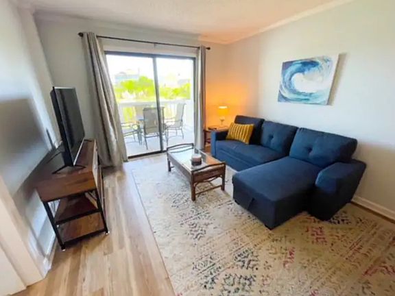 Looking for an off season renter. One month or up to 3. January - March. After March property becomes short term rental for daily or weekly rates. Condo is Two bedroom two bath ocean side gated condo in the Point Emerald villas. Complex offers 2 seasonal pools (May-October), basketball court, tennis courts/ pickle ball, outdoor charcoal grilling area, and two ocean front access points with showers- 1 which is handicap accessible. Condo features a covered deck with furniture perfect for a lunch break or evening beverage. Kitchen has new appliances, bar stools, and new small sofa and chair in living room, plus IN UNIT LAUNDRY. Master bedroom has queen bed with TV and access to porch and newly updated bathroom. Guest room has two twin beds. B101 is a short walk to the private beach access and all amenities in the complex. Month to month rentals December - end of March. Weekly / daily rental found on VRBO after that. Internet and cable and utilities included. Fully furnished with in unit washer dryer. No pets or smoking.