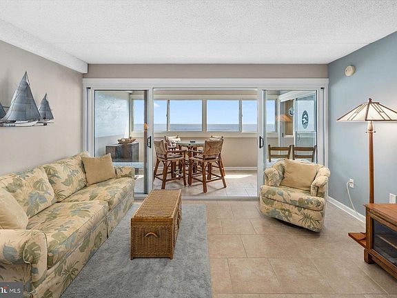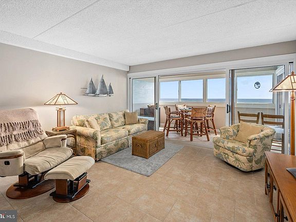 If a 2-bedroom, 2-bath, Direct Oceanfront condominium is on your 2024 OCMD bucket list, do NOT overlook this unit! Creative & extensive renovations to floorplan, kitchen, bathrooms, flooring & balcony sliders truly set this unit apart and make it an incredibly unique beach retreat. The enclosed balcony acts as the privacy divider between the oceanfront master suite & the rest of the unit. The balcony & primary bedroom views are expansive and the windows slide open effortlessly allowing you to capture the ocean air & sounds when desired. Imagine the living space flexibility the enclosed balcony offers on rainy/windy days and cooler nights! The expanded footprint of the living room & kitchen will most certainly be appreciated by those who enjoy gathering with friends, family, food & beverage. You'll quickly forget you're in a condo as you enjoy ample counter & custom cabinet space! Your guest room comes complete with stellar sunsets, bayviews & discreet access to 2nd bathroom. Both bathrooms have been completely renovated & offer a raised shower lip, perfect for bathing a young child. This unit has been extremely well cared for and lovingly used, never rented. Schedule an appointment today & enjoy your 2024 summer plans at the beach! Sold completely furnished as shown.