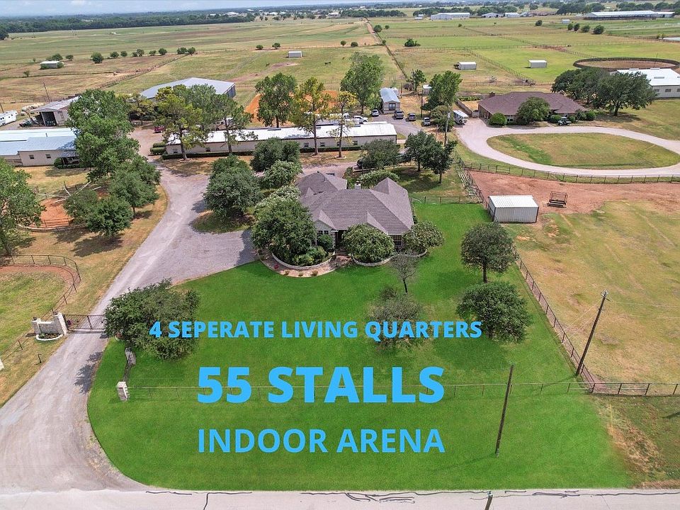 This gated premier equestrian property offers 4 Total living spaces that includes a CUSTOM home With Multiple Barns and Arena's. The Custom Built home is beautifully made with wood like tile floors and light and bright floor-plan. This home is highlighted by a western themed kitchen with high level granite and custom cabinetry. 3 More additional rooms fit a king size bed in every room. Step outside and you will find a beautiful equestrian center with 55 Total Stalls. Show Barn features 19 Oversized stalls, Spray Foam, Wash rack, Tack Room, Fly system are just a few of the many upgrades. 2 separate additional barns totaling 36 total stalls with features such as Office space and Lab perfectly set up for any horse lover. 100x100 COVERED ARENA and entertainment space with an additional 170x100 OUTDOOR ARENA. 4 Large Pastures with 3 loafing Sheds. 6 Total Turnouts. 3 horse walker and circle round pen. PLEASE contact agent for additional info, website details, Virtual tours and videos.