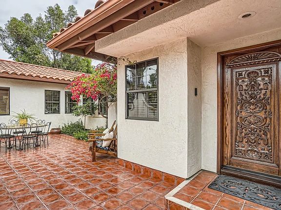 STUNNING Spanish Revival/Mediterranean BEAUTY with PANORAMIC views! The seller modernized this home while staying true to the style and age of the home with amazing detail.You begin with the outstanding curb appeal and entry grounds, then you enter the house through an old-world courtyard with a fabulous sitting area surrounded with lush plants and bougainvillea.After passing through the ornately carved wooden entry door, you are greeted by a custom brick archway framing an extraordinary view to the valley and the hills beyond! Living Room and Dining Room have full length wall windows to take in the never-ending views as well providing an abundance of natural light.Gorgeous dark walnut hardwood floors and old growth heart redwood vaulted ceilings fully complete the aesthetics of these rooms.The Kitchen was completely remodeled with custom hexagonal floor tiles from CeramicaJR, custom marble counters from the Imperial Danby Quarry in Vermont, cherry cabinets,all high-end stainless appliances including a six-burner commercial stove as well as skylights and a full-length bay window, that take in the exceptional views. The primary suite features a large walk-in closet, lovely views and a completely remodeled bath with soaking tub, custom tiled shower, marble topped vanity and custom brick accents throughout, AMAZING! Off of the master is a wood beamed vaulted cabana, featuring a built-in bar with BBQ, mini fridge and custom mosaic backsplash, perfect for year-round entertainment! Or jump in the spa next to the cabana!The back yard is SPECTACULAR w/a gorgeous pebble-tech pool!
