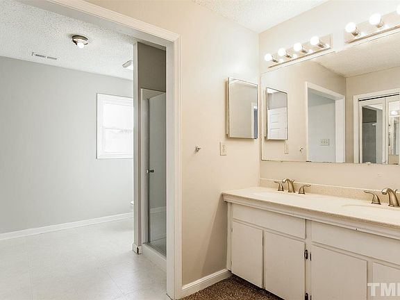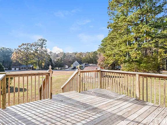 Built-in 1986, this Fuquay Varina home offers a walk-in master closet, dual sinks a separate tub and shower in the master bathroom, a den, a fireplace, a deck, and off the street parking.