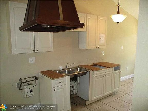 1 story townhome with 2 bedrooms and 2 bathrooms located in Cedarwood community of Pembroke Pines. Kitchen has formica counter top and wood cabinetry. Bedroom has vaulted cabin-like ceiling with walk-in closet. Spacious livingroom also has wooden vaulted cabin-like ceiling. Property has a light-filled spacious open floor plan and is tiled throughout. Other features include an open patio, washer/dryer hookup, a large fenced yard and a community play-area. This is a Fannie Mae HomePath property.