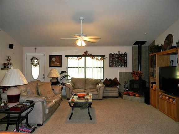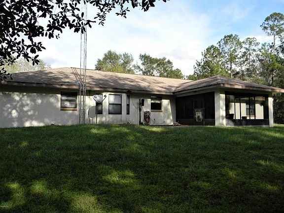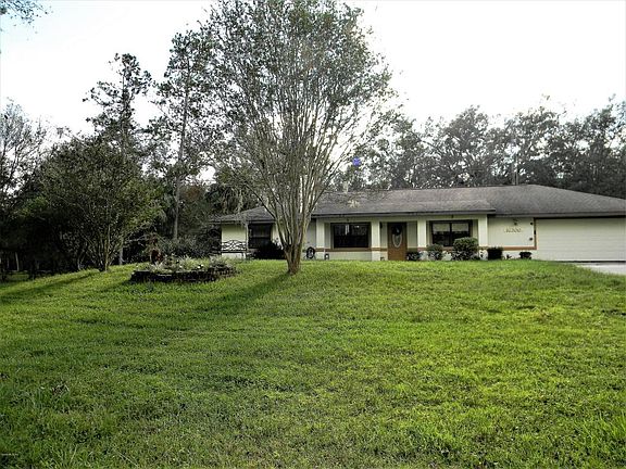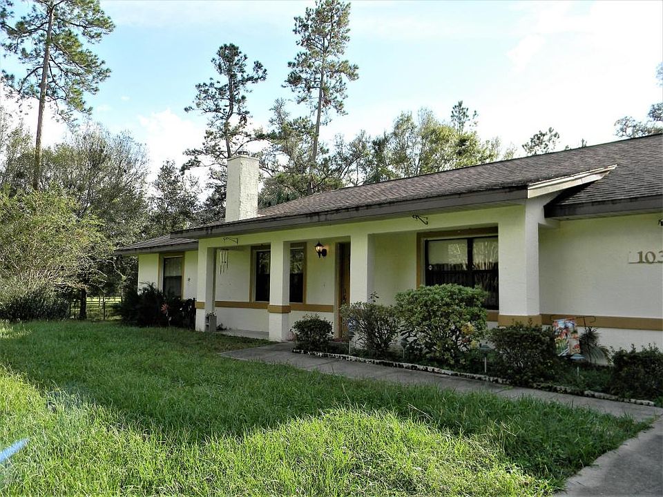 Enjoy country living on over 4 fenced acres of privacy, yet only an 8 mile drive from NE Ocala! Eligible for 100% FINANCING! 3/2/2 home offers an open floor plan w/ cathedral ceilings. Living room features surround sound & a quaint wood burning stove for cool winter nights. Stainless Steel appliances, breakfast bar, & eat-in kitchen area overlooking bay window. Private bonus room off the garage, under a/c & heat, perfect for an office or hobby room. Inside laundry room w/ extra storage space. Security system w/ multi cameras, French doors lead out to the covered screened porch. Reverse osmosis water system throughout the house. Large 24 X 32 Pole Barn/Open Storage shed with concrete floor. Relax under the old oaks scattered on the property & small pond. Plenty of green pasture for horses.