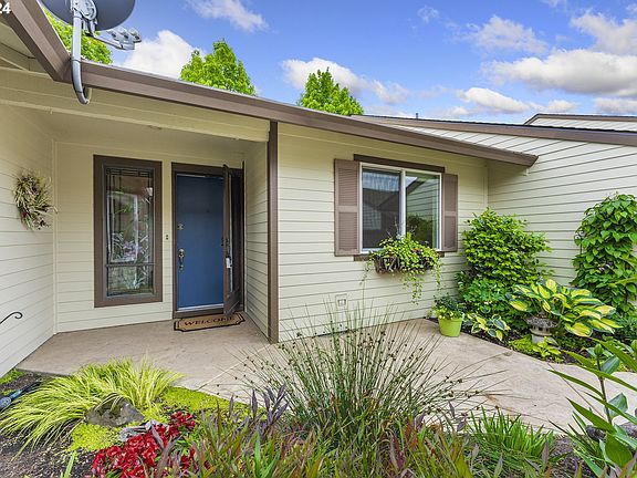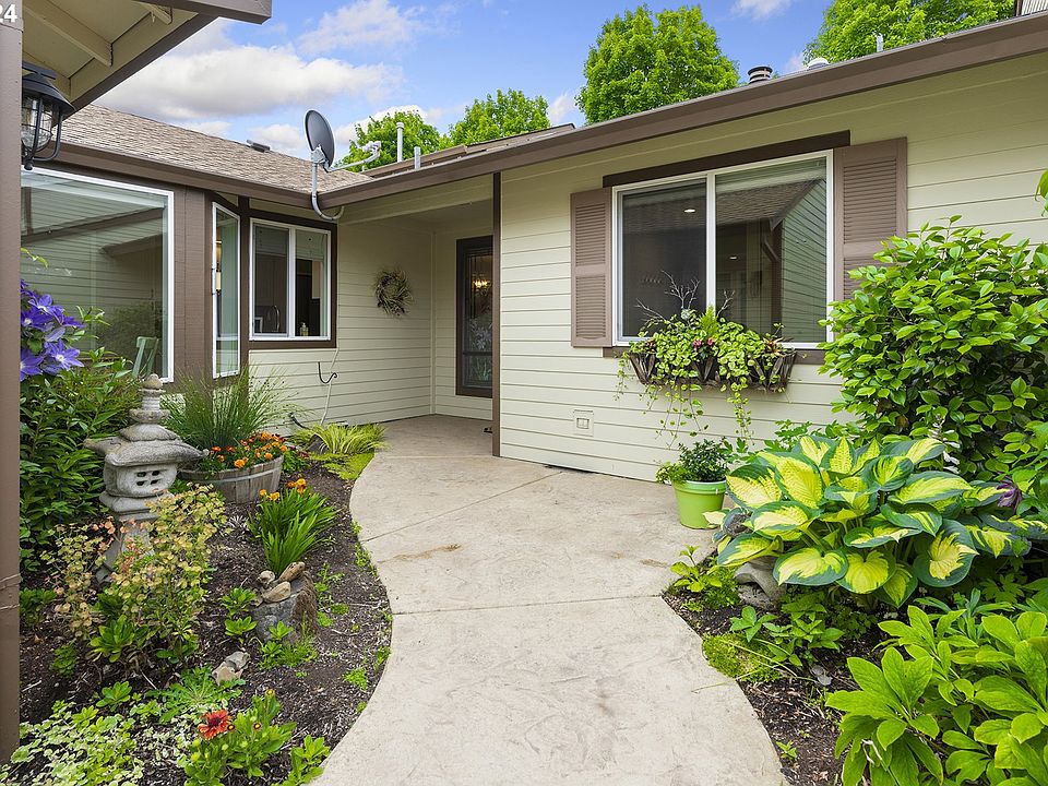 Ideally located one short block from golf and the clubhouse, this updated, single-level townhouse is a standout! Welcome guests through a charming courtyard planted with perennials. Serve cool drinks on the private, shaded back patio. Sunny kitchen and informal eating area look out to the courtyard where you may spot a rare white bird who frequents the garden. Most everything has been updated in recent years including the kitchen and both bathrooms. Highlights include a custom walk-in tile shower, brushed stainless appliances in the kitchen, laminate wood floors. and a hi-efficiency HVAC system. Charming stone design surrounds the gas fireplace. You'll find lots of storage in the attached double garage with newer opener and keypad. The courtyard garden is automatically watered with a rainbird sprinkler system. Inside laundry. Even the crawlspace has been inspected and refurbished with a new vapor barrier in preparation of sale. A few blocks from Trader Joes, Rite Aid, Ace Hardware, Chipotle, and not far from Bridgeport Village and New Seasons. Summerfield offers a sense of community and fun, active living for those past 55. Monthly HOA; $422 covers lawn care, basic cable tv and all exterior building maintenance.