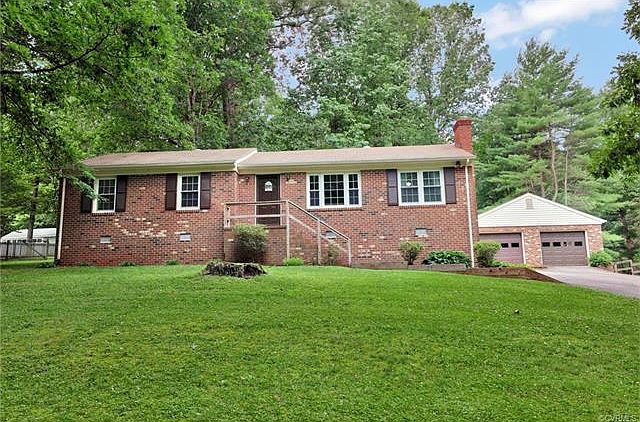 Amazing home for an amazing price. Nestled in Western Chesterfield across from Pocahontas State park but still close to shopping, dining, and entertainment. Home features a large eat in kitchen, huge great room and living room. Four bedrooms and two fulls baths. Newer 15 Seer heat pump/central air plus two wood burning fireplaces which keep the entire house nice and cozy in the winter. Newer thermal vinyl windows. Oak hardwood floors and even the carpet areas have hardwood flooring under them as well. Large detached two car garage and fenced in rear yard. Almost an acre of land to enjoy your quiet evenings on your rear deck. Paved driveway and low maintenance brick and vinyl sided home. This is truly a great home to enjoy nature and have your own space. Come see this home today and you won't be disappointed.