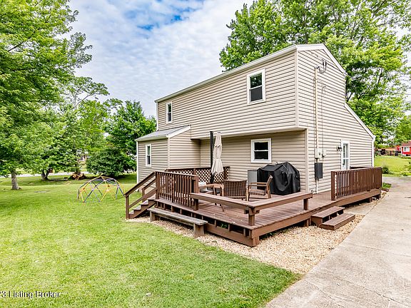 Come see this beautiful 1.5 story on a large corner lot! This home has a wonderful location that is conveniently located to shopping, expressways, & entertainment! Vaulted open ceilings, new floors & fresh paint welcome you inside! Off the living room is a first floor primary bedroom with a half bath. Through the living room you enter into an eat in kitchen with convenient laundry closet. Just off the kitchen is a spacious dining room. An open staircase leads up to two additional bedrooms with fresh carpet & paint. A lovely, full bath completes the upstairs. Just off the kitchen awaits an awesome deck with ample room for entertaining! Large storage shed to remain! Replacement windows, updated flooring & paint throughout! All this at an amazing price. Schedule your tour today