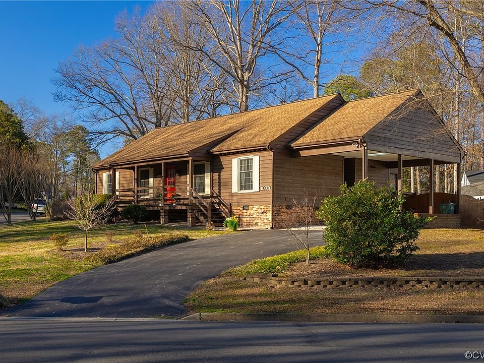 Great Schools and location on this well built and well maintained 70'S Country Cottage in sought after Bretton Woods. Nicely landscaped corner lot with mature plantings, fenced back yard, good sized shed w/ electric and workshop, wonderful glass sunroom and large deck are a few amenities you will love about this house. Nice attached carport gives your sheltered entrance to the kitchen side door. Paved driveway and long covered front porch welcomes you to the entrance. The foyer flows into the living room & connecting dining room and large family room. Handsome wide plank waterproof flooring runs through hallways, family rm & kitchen. Family rm has a raised brick hearth & gas fireplace and large breakfast bar /island. Oak wood cabinets and butcher block laminate countertops are original and are in good condition. Many cabinets have pull-outs installed. Electric range has retro black metal vent hood. Sliding glass doors open to lovely sunroom and good sized deck, a perfect spot to read your paper and watch the birds. Convenient one level open floor plan offers a circular flow, great for entertaining. The primary bedroom is spacious and offers attached full bath & good sized walk-in closet. The guest bedrooms have folding doors that connect the two rooms. You will be impressed by the size of the closets. Freshly painted throughout! New lighting, and new waterproof wood plank laminate floors in family room, kitchen and hallways. Glen Allen, Hungary Creek, Glen Allen school districts. Move in and watch the garden spring into color.