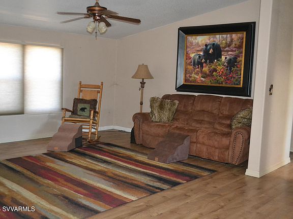 Charming manufactured home on expansive lot with Scenic Views. Spacious living space, split bedroom floor plan, Primary bedroom offers an ensuite den or office. Beautiful mature landscaping, guest house with mini split heating & cooling, 3 sheds for storage or workshop, covered parking area, 5000 gal underground water storage tank along with water transport trailer and tank. Conveniently located just a short drive from grocery stores, restaurants and shopping, offering the best of rural charm and everyday convenience.