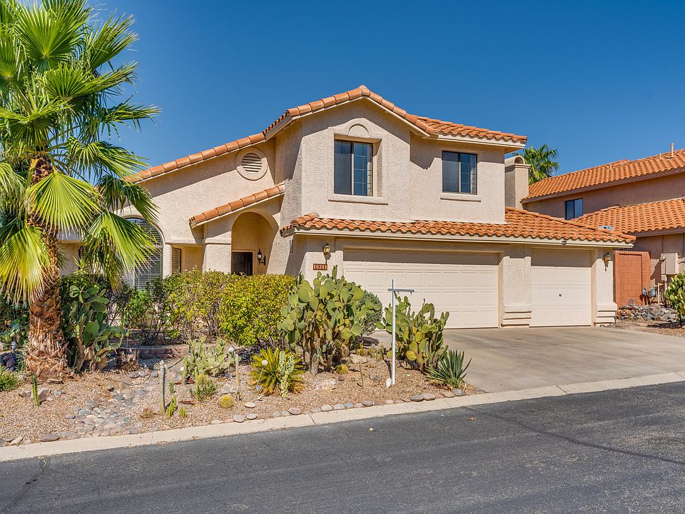 * This immaculate Oro Valley gem is a located in a highly desirable resort style community with a guard gate. It backs up to the golf course, boasts a 3 car garage and has a beautiful pebble tec pool. The home has 4 bedrooms, 2.5 baths and a den. Huge open family room, living & dining rooms are perfect for entertaining. Master suite has vaulted ceiling & private deck with golf course views. New stove, dishwasher and new carpet upstairs and all tile downstairs. It's a must see.The water conditioner located in the garage is ''as is''.