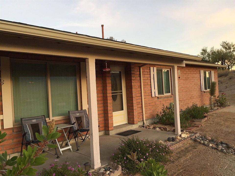 Unbelievable Views! 3 bedroom 2 bath home situated at the top of a hill with breathtaking sunrise and sunset views. Long paved driveway, slump block construction, beehive wood burning fireplace, 10X20 Arizona Room, Covered porch, greenhouse, 1 car detached garage, 2 car carport and property is at the end of a cul-de-sac all on 1.26 acres with over 40 saguaro cactus on the property. No HOA desirable neighborhood in Oro Valley. Close to shopping, dining and schools.