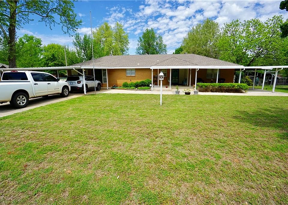 Very nice brick home on 1.14 acres on a corner. Fenced and cross fenced. Storm shelter. Home has vinyl siding, nice oversized two car carport and porch. Added porch on the side. Home has open kitchen with island. Huge living area