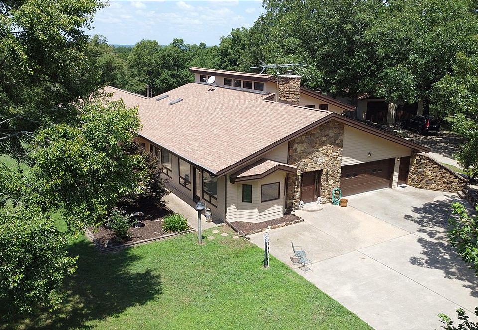 Rare Opportunity! Enjoy estate living on 38.20 beautiful acres boarding Hobbs State Park. The land has several clearings for possible future building sites. The custom designed/built Stitt energy efficient one owner home, features a living room with stone fireplace, open floor plan with natural light, and primary bedroom suite on the main level. Upstairs is an open landing overlooking the main level with two bedrooms and full bath. Off the large south patio is the 1,150+ sq. ft. heated and cooled cedar great room with the 36'x15' indoor pool (not included in the MLS sq. ft). Solar water heating system. New roof in 2023. All appliances including extra freezer, washer and dryer convey. Four excellent outbuildings. From a private paved drive it's a scenic 15-20 min to downtown Rogers. Bring your vision - This property is ready for it's new owners!