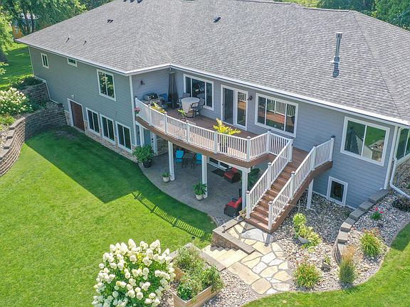 This beautiful, custom built, walk-out home on Pocket Lake exudes class the minute you walk in the front door! Stunning lake views captivate you as you enter the front foyer! Large open floor plan with gas fireplace and a private bar/lounge area on the main level makes it great for entertaining family & friends. This dream kitchen offers granite counter tops with custom curved island and sink, self-closing drawers, pantry, dual ovens and stainless steel appliances. Owners' suite offers lake views, tray ceilings, large closet, and a private bath like you have never seen! Multi-room built in speaker system and Cat 5 wired throughout the home, as well as a backup generator. Home also offers 4 zone in floor heat (includes finished 3 door/4 stall garages), new shinges in 2020, spray foam insulation, hardy board siding, maintenance free decking and patio areas, extensive block and perennial landscaping, lakeside attached garage stall and an 8 zone irrigation system! Come see for yourself!