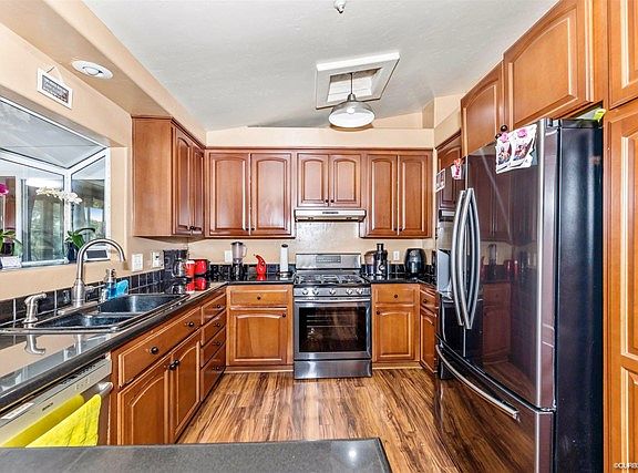 Two story 4 bedroom 3 1/2 bathroom Spring Valley home that sits on top the hill overlooking the mountains. Long private back deck with the bottom enclosed for storage, playroom or kennel. Upstairs kitchen, living room, dining room and Master bedroom with a spa tub. Kitchen includes granite counter-tops, stainless appliances, refrigerator, stove-oven and dishwasher. Downstairs TV room, and 3 more bedrooms. Tile and laminate wood floors throughout. Semi-private driveway leads to the two car garage with washer and dryer. Quick access to the 94 freeway and walking distance to Monte Vista HS and Loma Elementary. Pets are OK with additional deposit. Please make appointment and do not disturb occupants.