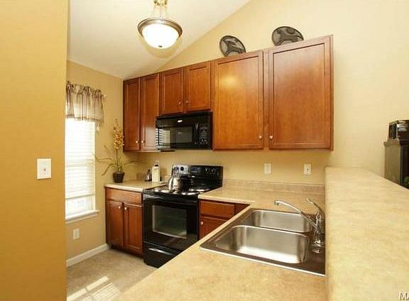 Clean and move in ready! LOWER PRICE! Open floor plan, vaulted ceiling in great room, dining room and kitchen. Kitchen features include a breakfast bar, upgraded 42 inch maple cabinets, black appliances-microwave, dishwasher, range, refrigerator. ALL stay including the refrigerator. Master bedroom suite is generously sized with a vaulted ceiling, upgraded ceiling fan/light fixture, a walk in closet and full bath. Bedroom two has a full bath too. Unit has its own washer and dryer that stay. Private balcony/deck accessible from the great room. Great room has built-in plant/display shelves and upgraded light fixture. Low monthly condo fee of $135 includes exterior maintenance, water, sewer, trash, snow removal. Springhurst Subdivision has a swimming pool, sport courts & clubhouse. Easy access to major highways 40/64, 70 & extensive shopping. Why rent when you can own for less? Qualifies for USDA loan (0% down). Call today to see this beautiful unit.