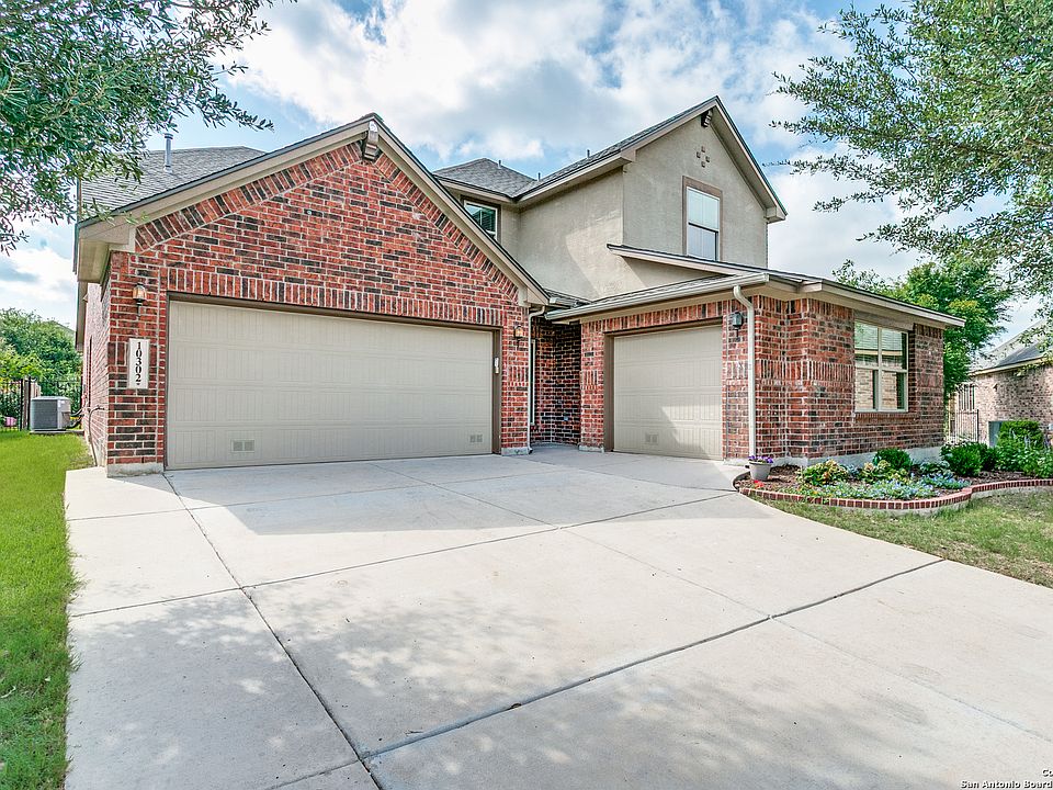 This amazing home encompasses all the possibilities that you want from the almost 1/4 acre (+/-), private cul-de-sac lot on a green space with a two car garage plus a single car garage (with built-in storage), for all your vehicles and hobbies. Gated neighborhood in popular Helotes with an elementary school right in the neighborhood and an amenity center with park, playground and pool. Plantation shutters, high ceilings, updated lighting fixtures, fans, wrought iron balustrade, double-door study (which could easily be bedroom 5), a half bath, dining/flex room plus eating area and breakfast bar Extensive white cabinetry in the granite and stainless steel kitchen with an oversized island. Gas downdraft convection range with 5th burner/grill area. Double-bowl sink, walk-in pantry and separate laundry room with tons of storage. Wood floor and a fireplace with a brick mantle are in the family room. Gorgeous view of the green space and a huge porch for entertaining, which is partially covered. There's plenty of space for activities, plus a garden area. First floor, secluded main bedroom with double-doors, wall-to-wall bayed sitting area. En suite bath with double-doors, corner tub, separate vanities, separate tiled shower and a very spacious closet. Upstairs game room overlooks the family room. The reading nook is open to two bedrooms with walk-in closets and the hall bath. The additional guestroom has its own full bath and a closet. Northside schools.