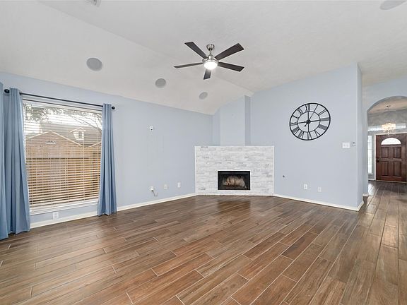 Here’s suburban living that's second-to-none in a scenic, quiet spot in master-planned Sienna Plantation! This gorgeous corner lot home boasts a modern interior, beautiful home office with French doors and a flow-through living area with a stacked stone fireplace and wood floors throughout. Cooking and cleaning have never been easier thanks to this spacious kitchen that has been well-maintained with stainless-steel appliances, double oven, quartz countertops, stunning kitchen island, spotlights, and built-in wine fridge. Adding to the home’s attractiveness, the primary bathroom offers a spa-like ambiance and features a separate shower, freestanding tub, double sinks and beautiful tile flooring. In the backyard, you will enjoy a covered patio and POOL! The perfect location for outdoor fun. Avoid mud and nasty weather with a large 3-car attached garage. A rare opportunity. Schedule your showing today!