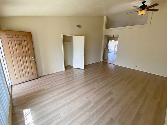 Fantastic corner lot home with split floor plan and high ceilings! Perfect floor plan 3 bedroom, 2 bathroom with master on one side of house and 2 bedrooms on the other side. Tiled eat in kitchen area. Large front and backyard, covered patio in the back. Plenty of square footage to entertain guests! Pets allowed with approval