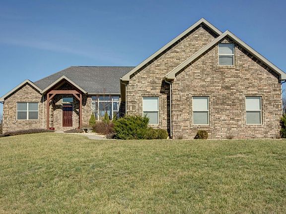 10303 Lawrence 1162, Mt Vernon.Welcome to Majestic Estates. LOOKS LIKE BRAND NEW CONSTRUCTION!!!With just over five acres, this beautiful ALL Brick walk-out basement home has a lot to offer. Tucked away at the end of a private street, this FIVE bedroom home features three full and one half baths, large open kitchen with Oak Cabinetry and granite counters, bar seating, and French doors leading to the back patio. Hardwoods, Corner Gas fireplace, Large spacious living areas, and more. The Master Suite features vaulted ceiling with large private bath. Jetted corner tub, walk-in shower, and plenty of counter space. Peaceful setting with relaxing back patio and custom pergola overlooks the acreage and a fun brick fire pit. Just 20 minutes outside Springfield!