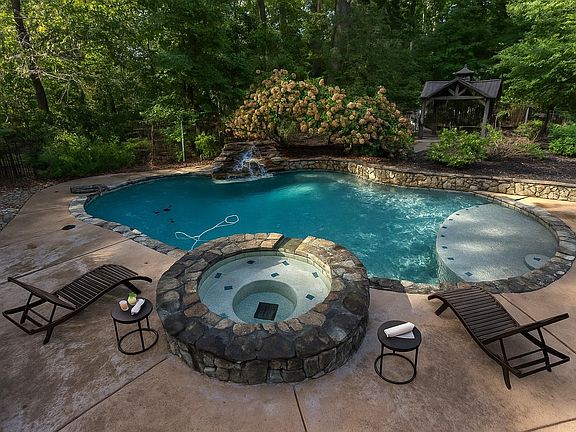 Located in one of Lakeland’s most sought-after neighborhoods, this stunning 5BR/4.5BA home blends timeless elegance with modern upgrades. Designed for both upscale entertaining and everyday living, it features a spacious, light-filled interior with new paint in main living areas, designer finishes, and a chef’s kitchen with gas cooktop, double ovens, drawer microwave, and custom cabinetry. Enjoy a true backyard retreat with a heated mineral water Gunite pool/waterfall/hot tub w/Zodiac Aqualink automation, two-tiered patio w/gazebo, and lush landscaping with lighting backing up to woods. Recent upgrades include: 26kW Generac generator (2023), tankless water heater (2025), new roof (2023), all AC units (2019–2020), iron front door, WiFi irrigation system, upgraded gutters, and full security system w/cameras. This home has a lot to offer with too many extras to list. Come and see it for yourself! Lots of upgrades that new homes don't have!