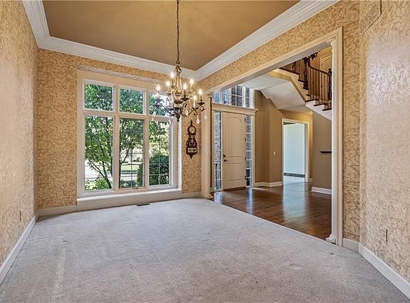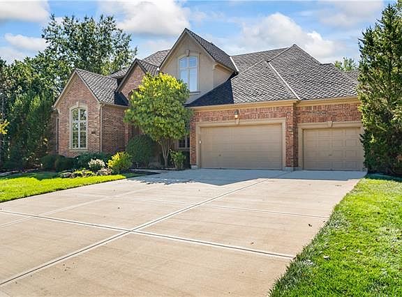 Hard to find almost all brick home with brand new Presidential roof, Newer HVAC and space galore. Three finished levels on this gorgeous 1.5 story home. Great price for 1.5 story in Blue Valley School District. Open kitchen hearth-room with private patio and backyard. Large granite island with room for casual dining. Office, guest room and master bedroom all on the main level. Finished lower level with bar and plenty of extra storage. Upper level has bedrooms three and four, each with ensuite bathrooms. Wonderful yard and convenient to shopping, recreation and schools. Bring us an offer!