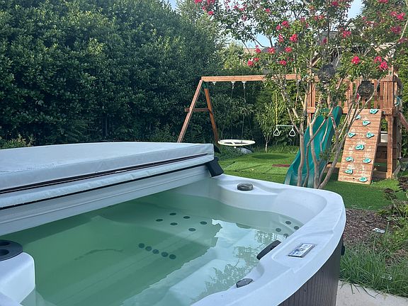 Discover luxury living in this recently remodeled 6-bedroom home with a game room in a vibrant neighborhood packed with amenities. The property features an extensive backyard oasis, including a heated saltwater pool, jacuzzi, gazebo with a fully equipped outdoor kitchen, a children's swing set, and fruit trees perfect for entertaining. The fully furnished interior includes elegant touches like a piano and treadmill. The neighborhood offers access to a pool, tennis courts, basketball court, and playground. Conveniently located within walking distance of Sandy Ridge Elementary School, this home is ideal for families or anyone seeking a blend of comfort, style, and community.