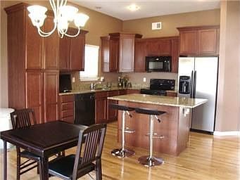 REVERSE WINDSOR floor plan! Very Open & Spacious! 4 bedrooms, 3 baths, Archway & Rounded Corners! Stay on one level if needed. Hardwood floors from entry to Kitchen, Breakfast area, and hallway to bedrooms! Kitchen with Granite island & Counters, Pantry, Lots of cabinets, Large formal dining room, Tiled Fireplace, Ceiling fans, Master bath includes: Tile, Dual vanity, Whirlpool tub, Separate Shower, Walk-in closet. Master bath adjoins main level laundry room. Finished walk out basement with 9' ceilings, Walks out to Large patio with stairs to 12x12 deck above! 'Tyvek Wrap' exterior with Low Maintenance! Tons of storage! Two Bonus rooms could be used for a work out, office or other! Awesome back yard of Trees & wild life & Green space! Security System, Humidifier, Energy Efficient HVAC. 3-car Garage with Openers! EXCELLENT Liberty Schools! Close to shopping, Restaurants! Great access to major roads and highways!!