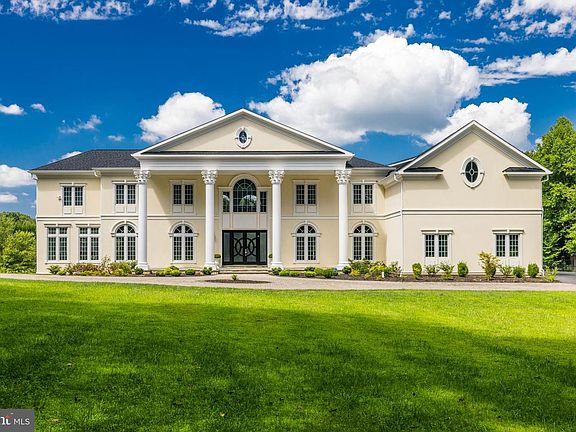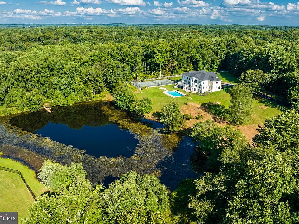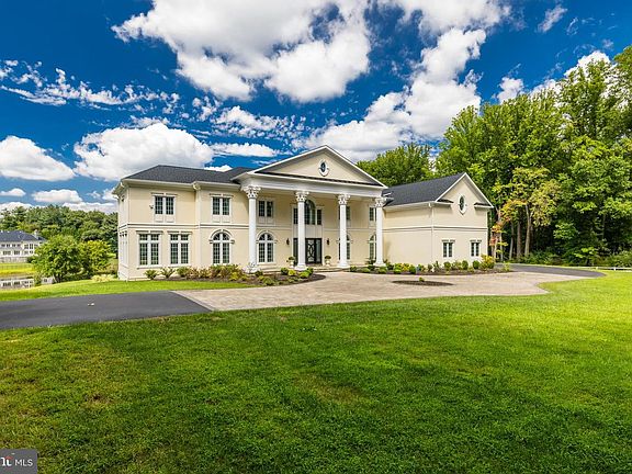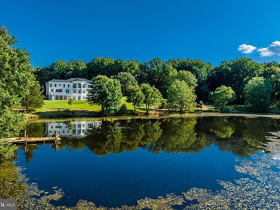 Nestled within the private community of The Pond, 10305 Beach Mill Road is poised on 5 acres that encompass half of the tranquil Creekstones Pond. This luxury home was built in 2020 and presents an exquisite waterfront haven that epitomizes the essence of modern luxury. Spanning over 12,000+ square feet of living space that includes 8 bedrooms and 7.5 baths, the residence's architectural beauty features expansive windows that frame breathtaking vistas of the calm waters and lush lawns. This newly constructed masterpiece seamlessly merges open, bright, and secure spaces, delivering an unparalleled living experience that checks all the boxes for discerning buyers in Great Falls. As you drive through the gated entry and follow the private pine-lined drive, you're greeted by the allure of an inviting front porch adorned by Corinthian columns, setting the tone for the elegance that lies within. This property is a testament to sophistication and privacy, boasting oversized rooms with hardwood floors and a breathtaking great room featuring 25 foot ceilings and expansive windows that frame captivating views of the pool and tranquil pond. Indoors, the large, all-white gourmet kitchen with stainless steel state-of-the-art appliances, overlooks the sparkling waters and is an invitation to culinary excellence. Step onto the spacious deck that expands living and entertaining possibilities and provides an idyllic backdrop for al fresco dining or quiet contemplation. The upper level unveils luxurious and spacious bedroom suites, each with with its own gorgeous bath, walk-in closet, and beautiful views. The owner's suite occupies an entire wing, providing remarkable water and pool vistas, a lavish bath with a jetted tub and double vanity, and an expansive closet that fulfills every wardrobe aspiration. The lower level offers an enticing retreat, with recreation room, more spacious bedroom suites or bonus rooms, a home gym, and an entertainment-ready wet bar with a full- size refrigerator. French doors open to the pool and rear yard, further enhancing the connection between indoor and outdoor living. With an unfinished space that holds the potential for a bespoke home theater, this property invites you to create your ultimate cinematic escape. Other amenities include a tennis court, pond with dock, 4-car garage and expansive storage spaces. 10305 Beach Mill Road harmonizes the allure of waterfront living with the sophistication of nearly new construction, ensuring a bright, open, and secure sanctuary that's entirely private. This exceptional offering captures everything a buyer desires in a Great Falls property and stands as a testament to modern luxury at its finest.
