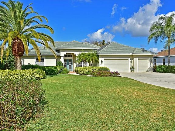 AWC - Taking Backup Offers Gorgeous custom home situated on over 1/2 acre of private golf course lot in desirable River Club community offers stunning golf course view and walking distance to Braden River Elementary and Middle Schools. This bright and meticulously maintained home is nicely appointed with custom touches throughout w 4BD, 3BA, newly updated kitchen including SS appliances and countertops. A large Breakfast bar and pantry is great for extra seating/storage. The master retreat features new paint, carpets, customized closets and the bathroom features double vanities, new cabinetry, a separate hot water heater. The family room has engineered wood floors, sliding glass doors, built ins while an adjacent bonus room w/wet bar can double as an in-law suite or a large gathering room. The lanai and pool area has a large overhang, newly resurfaced Pebble TecTM pool, solar heating/cover, baby gate and an extension. The spacious yard is complete with a basketball pad/hoop. The 3-car plus front loading garage has an 8x9 a/c utility room for a workshop or fitness area. There is a golf cart separate garage to the rear of the home. New exterior paint, tile roof and lush landscaping only add to the appeal of this home. RC is close to UTC corridor stores, I-75, restaurants without any CDD costs. Move in now for a pristine, customized home at a great price.