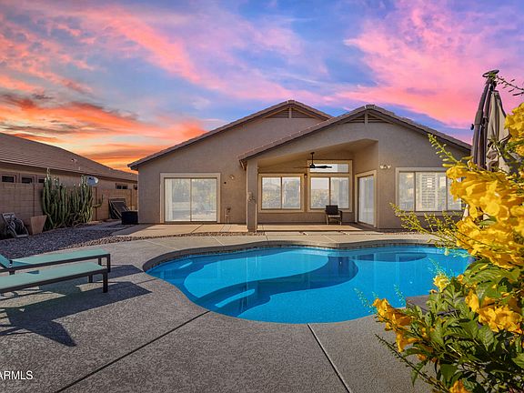 If you are looking for a SINGLE STORY home with a POOL in a GREAT location in Mesa, this is the one! Nestled in Santa Rita Ranch, this 3 bedroom + Den, 2 Bath home is on a premium lot, that backs a greenbelt. The property has an open concept floor plan with granite countertops in the kitchen, white cabinetry & stainless steel appliances. Outside enjoy the low maintenance backyard with a pool, less than 2 years old. This neighborhood is ideal for commuting, just minutes from US 60 and The Loop 202, fantastic restaurants, close to medical care, and entertainment.