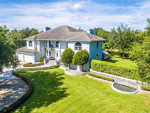 Stunning 3 bed/3.5 bath home with add'l 1/2 bath in pool area, 3-car attached garage on circular driveway, add'l garage/barn that includes a work shop, gym, and office, 2 ponds, covered RV parking with full hook ups on nearly 5 acres! This lovely country home features an elegant open floor plan. The main floor features a graceful open staircase, cathedral ceilings and over-sized living room with built-in TV and electric fireplace with sliding glass doors to the pool. The large adjoining kitchen has granite counter tops and a spacious breakfast bar that seats seven. The island has a gas cook top with automatic vent system and sink. The intimate dining room has garden views for fine dining. Just off the kitchen is the laundry room with oodles of storage. The wash sink has a unique fixture for hand washables. A spacious guest bedroom with attached full bath is conveniently located on the main floor along with a separate 1/2 bath for guests. The second floor features an add'l guest bedroom with attached full bath and loft area. The comfortable master bedroom features a fireplace and leads to the enormous master bathroom that features a bidet, whirlpool tub with fireplace, separate shower, and stackable washer and dryer in the huge walk in closet. The unique salt-water pool and spa have a view of the pond fountain. Trees surround this beautiful property for privacy. What home has two propane tanks totaling 1,250 gal to power a generator for emergencies? This one does. Take the virtual tour of your new home!