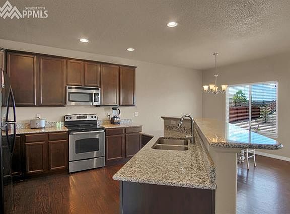 This is an immaculate 2story home that is just like new. Main level, which is covered in beautiful large plank hardwood flooring includes a formal dining room and large kitchen that opens to the family room with fireplace. Kitchen also walks out to custom colored, stampeded concrete rear patio with well manicured back yard landscaping and unobstructed Pikes Peak Views. All 4 bedrooms are upstairs with the laundry room and a huge master bedroom with 5pc bath. Garage is complete with 240v power outlet and 120v 30 amp outlet.