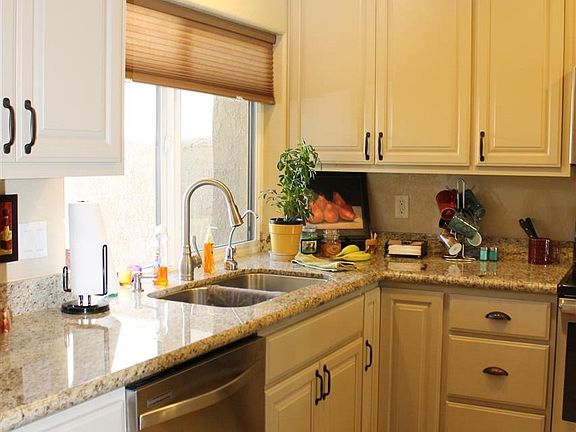 This home is a golfer's dream! Located right in between the 17th tee box and the 13th green, enjoy great golf shots and beautiful sunsets from the extended back patio. This completely remodeled home offers custom cabinets with roll out shelves, high performance windows, upgraded electric a lot of attention to detail. This home shows pride of ownership and is a must see!!