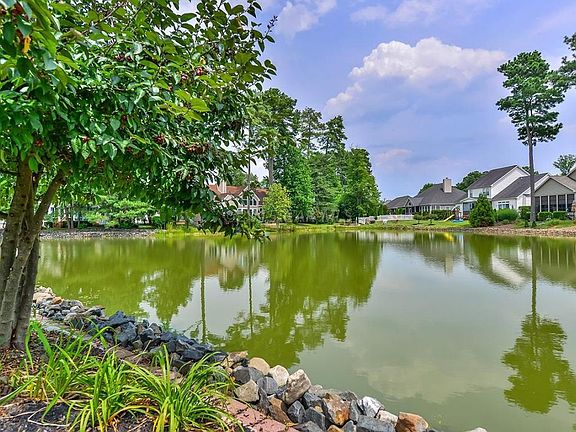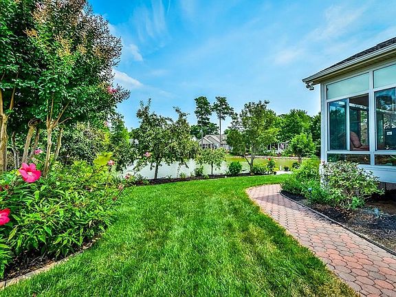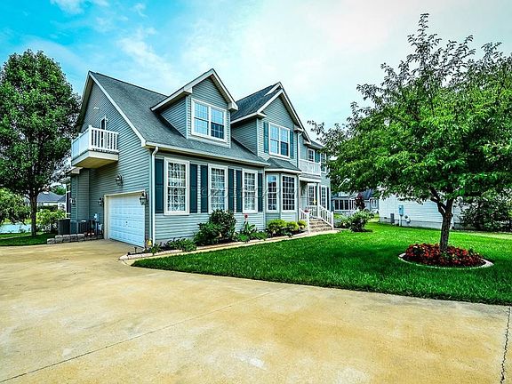 Exceptional 151' rip-rap Pond Front Home on quiet cul-de-sac, custom built $100k+ in upgrades. Dual staircases, bright wtft Sunrm, 12'x16' composite deck w/ vinyl rails, custom blinds thru-out, box bay windows, 4'x8' outdoor shower w/ dressing rm, side-load finished garage, expanded driveway for 6 vehicles, paver sidewalks, brick front steps, extensive mature landscaping & irrigation system, low voltage lights, low-e filmed windows. Updated dual zone HVAC, tray ceiling MST w/ attached bonus rm & balcony. Tiled Baths, Kit, BkfstRm, carpeted Bedrms. Updated stainless steel appls, crown moldings, gas firepl w/ mantle FamilyRm. West OC Cmty: no flood insur req, refuse srv, lawn mowing, pool, street lights, Prof Mgt. Neighboring OC Elem Sch. HOA $107/m, RE Tax $295/m, Pre-Inspected, Peaceful!