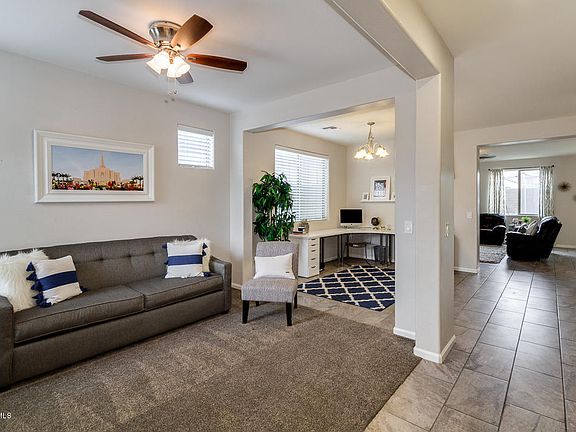 Eastmark's ''better than new'' treasure with 4 bedrooms, 2.5 baths, loft, and 3 car garage offering 2735 square feet. Community Pools & Parks! Perfectly located North/South Facing across the street from the park and a greenbelt behind you. All the stainless steel appliances including refrigerator are staying with the home as well as the washer/dryer located upstairs in the laundry room. This home features gorgeous plank tile floors and plush carpet upstairs. The grassy backyard is private and has plenty of room for a pool. The airy light gray walls and flooring. A perfectly positioned powder room is off the stairs as you walk to the back of the home to enjoy the open Great room and Kitchen area. A kitchen island with granite countertops is ideal for gatherings of family and friends. The walk in pantry is just off the kitchen with plenty of storage shelves. There's a separate living and dining room which is being used for a sitting area and office. There is additional storage under the stairs for all your holiday decorations and important valuables. The Master suite includes 2 sinks, a separate shower and soaking tub, and an oversized walk-in closet. It is separate from the other 3 good sized bedrooms. A roomy loft gives more areas to play and relax. So many great features this home has to offer, it will not last long at this price. Eastmark is ranked Arizona's #1 master planned community and children can enjoy the new Elementary School Silver Valley (K-6) or Eastmark High School (7-10) for the upcoming school year in July 2019. Other Schools in the community include BASIS Mesa, Sequoia Pathfinders, ALA, and Learning Experience Preschools..
