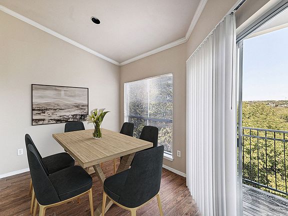 - Exterior features: 24-Hour On Call Maintenance, 9-Foot Ceilings With Crown Molding, Balcony, Bay Windows*, Breakfast Bar*, Business Center, Easy Access to Freeways and Shopping, Flooring: Wood, Garden, Gourmet-Sized Kitchen, Hiking and Jogging Trails Nearby, Internet with speeds from 300Mbps to 1 gig, Magnificently-Sized Bathroom With Vanity*, On-Site Management, Online Rent Payment, Outdoor Kitchen with Gas Grills & Picnic Tables, Package Receiving, Pet Park, Reserved Covered Parking, Resident Activities, Secluded Cul-de-Sac, Spacious Closets, Spacious Linen Storage, View Type: Wooded Views