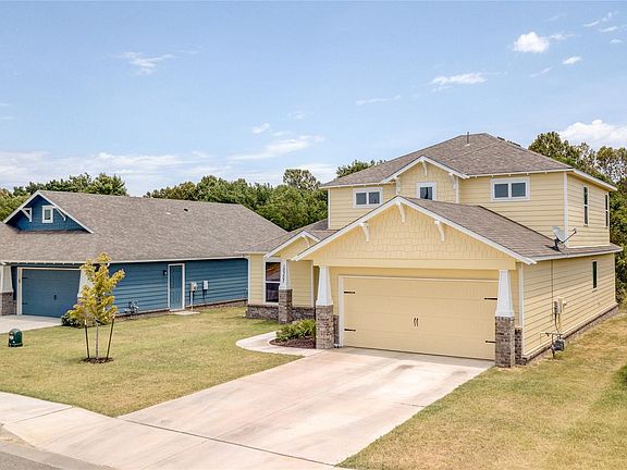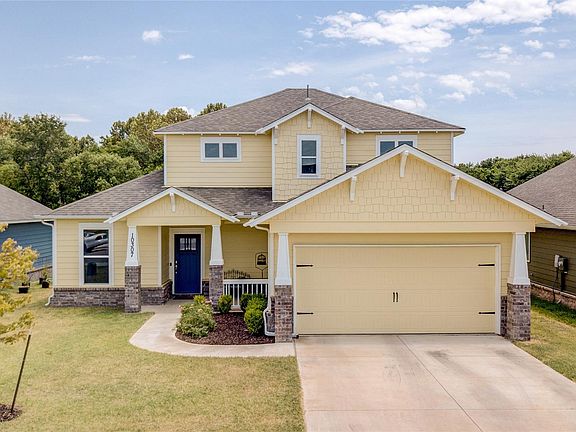 Lovely craftsman home that backs to a beautiful greenbelt! Feels like country living in the city. Newer construction - Capital Homes, Vermont Floor plan. 4 full beds (1 down and 3 up), 2.5 baths plus office (downstairs w double doors and tile) and bonus loft area upstairs. Great floor plan with main living areas and office with wood-look tile, bedrooms, stairs and loft area have carpet. Granite countertops in kitchen and large eat in dining and breakfast bar. White cabinetry and trending colors with decorative tile in guest half bath. Great stacked modern stone on the fireplace in the living room. Owasso School District, newer construction neighborhood that is now complete! 2 doors down from cute little park area for the neighborhood. Walking trails are an added bonus to the subdivision. Best floor plan with the most space - come see QUICK!
