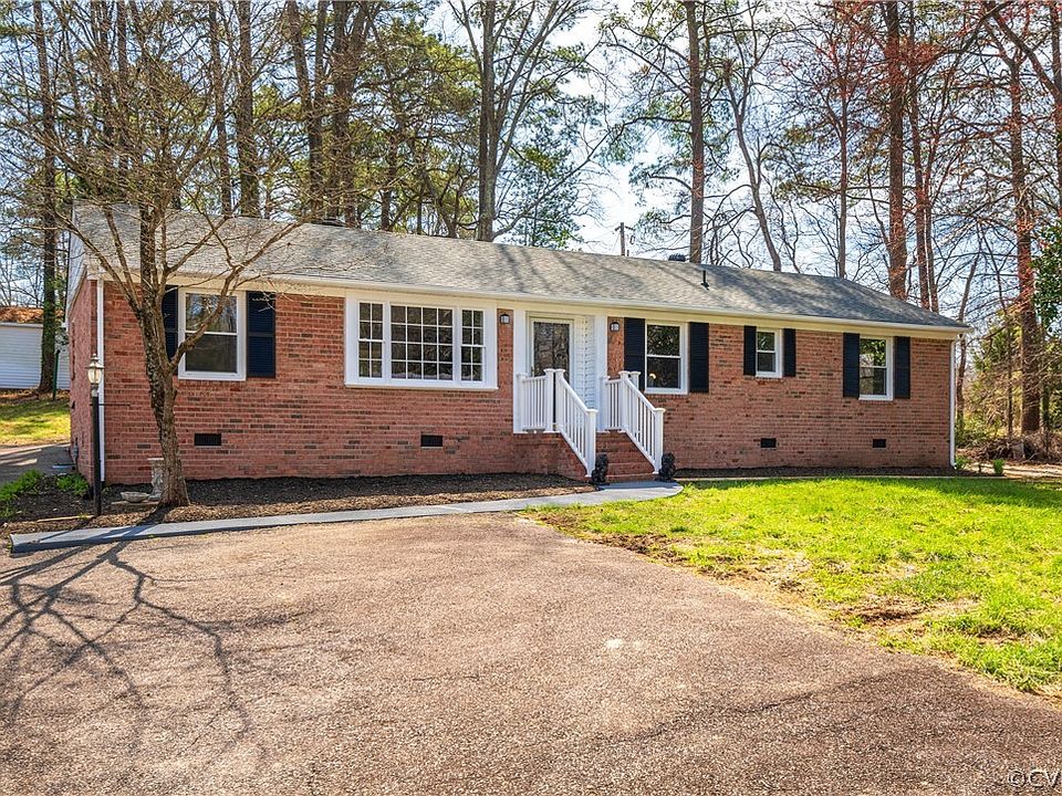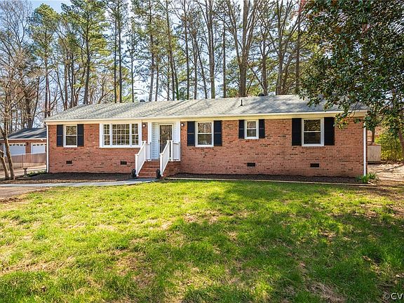You're going to fall in love with this one level, 3 bedroom, 2 bathroom home with a sunroom & a list of upgrades! You’re greeted with an interior that boasts an open layout concept, recessed lighting & stained hardwood floors throughout. The kitchen has been revamped featuring ample cabinetry, NEW stainless steel appliances, quartz countertops & NEW tile flooring! The primary suite features a walk in tile shower. The hallway bathroom features a dual vanity & NEW tile work also. Other upgrades include NEW 30 yr roof shingles, NEW custom windows, updated bathrooms, NEW HVAC system, NEW vapor barrier for moisture, freshly painted. You get all of this & all on a spacious lot! Courthouse rd is easily accessible, minutes away from Midlo, hull st, Rockwood Park, Chesterfield county public school system, shopping & dining! Schedule your showings today & make this yours before it’s gone!