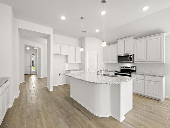 This lovely one-story home offers an open-concept design with the family room and master retreat at the back of the home. Just off the foyer is the study with double doors, an ideal space for those needing to work from home or a quiet place to enjoy hobbies. Next is the formal dining room, an open space to host dinner parties or enjoy everyday family mealtime. Continue to the open-concept kitchen, a space designed to be the hub of the home. With ample storage and counter space, stainless steel appliances, a curved island, and a walk-in corner pantry, day-to-day life is made easy. The kitchen opens to a breakfast nook with a built-in window seat, a sunny space to enjoy early morning coffee or additional seating. The breakfast nook also provides direct access to the covered patio, an ideal space for enjoying your home outdoors. Open to the kitchen and breakfast nook is the spacious family room, an area designed to bring friends and family together. The master suite is a great place for parents to have optimal privacy and relaxation at the end of each day. Enjoy a large room with vaulted ceilings and a built-in window seat. The adjoined master bathroom is complete with a dual sink vanity, a separate walk-in shower with a seat, a large garden tub, and a spacious walk-in closet. Two additional bedrooms are housed in their own section of the home, making them perfect for kids or guests. Both bedrooms have easy access to a full bathroom, as well as a full-sized utility room, makin?