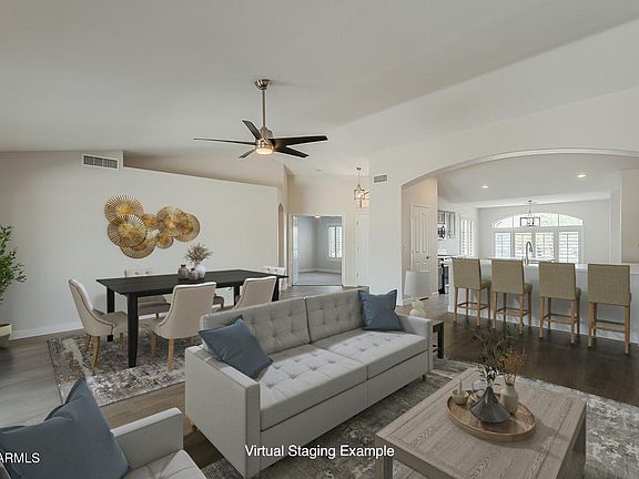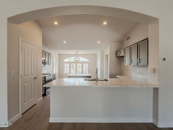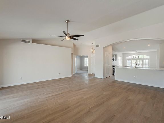 BEAUTIFULLY REMODELED single story home w/2 large bedrooms, 2 baths + Den, w/a bright, open floor plan, perfect for modern living. FRESH INTERIOR & EXTERIOR PAINT plus NEW BASEBOARDS & a 2 YEAR OLD AC. The split layout ensures privacy, w/a spacious primary suite. The open living area flows into a sleek kitchen w/ stainless steel appliances, NEW QUARTZ COUNTERS, NEW MICRO, UPDATED SHAKER CABS, NEW LIGHT FIXTURES & a fabulous breakfast bar. The home also includes a FULL HOME WATER SOFTENER SYSTEM, NEW LVP FLOORING throughout the main areas, plus a LARGE UPDATED LAUNDRY ROOM. And don't miss the fabulous FULL LENGTH PATIO & beautiful backyard to enjoy those beautiful sunsets. These are just some of the Amazing upgrades in this beautiful home! Don't miss this one Nestled in a friendly neighborhood, the home offers a serene backyard w/lush landscaping, a pomegra