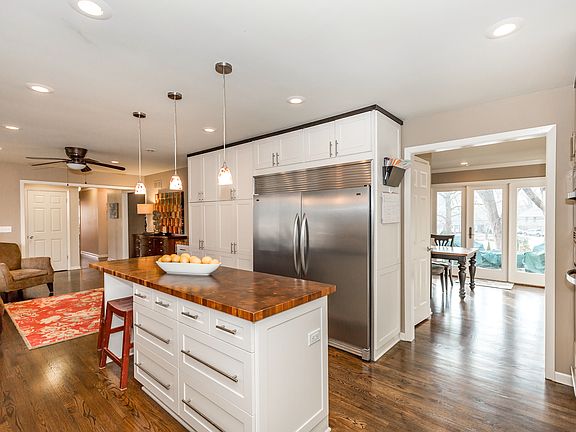 A beautifully renovated 2 car garage all brick ranch in Leawood. The home has so much to offer. The stunning kitchen has top of the line stainless steel appliances, end grain walnut countertops, loads of countertop and cabinet space and more. There are gleaming hardwood floors throughout the home that were refinished throughout in summer of 2016. Updated neutral paint colors. The master and hall baths have double vanities and georgeous tile floors. The finished walk out lower level a whole other level of living space. Orginnally this home was built as 3 car, but current owner converted 3rd tandem garage into workspace. Great home office space (or playroom) with heating, AC, tiled floors and tons of natural sunlight from windows. This home is a must see!