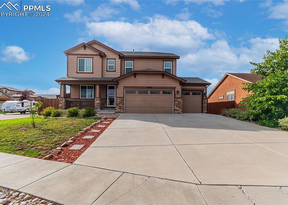 Don't miss out on this sprawling 2-story home in Meridian Ranch! Huge corner lot with a covered rear patio, cooking & seating area, enough to hold about 30 people comfortably for a garden party! Home lies on a low-traffic road within walking distance of Meridian Ranch Elementary School. Living room complete with gas fireplace for those chilly Colorado evenings. Upgraded kitchen with granite countertops and newer appliances. Fully-finished basement complete with a theater-room-space. So much space for the new owners to spread out. What more could you want? Immaculate, clean and move-in-ready; don't wait!