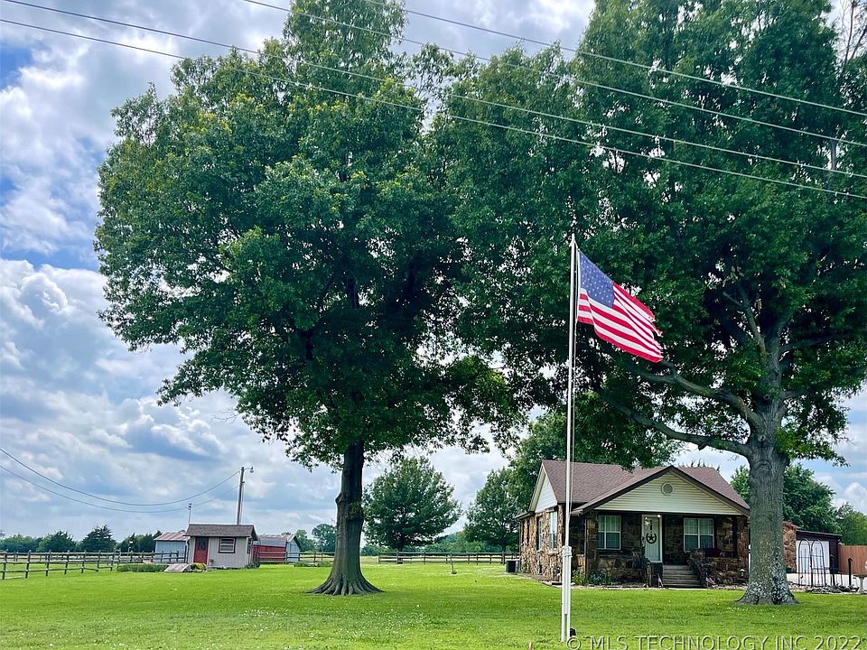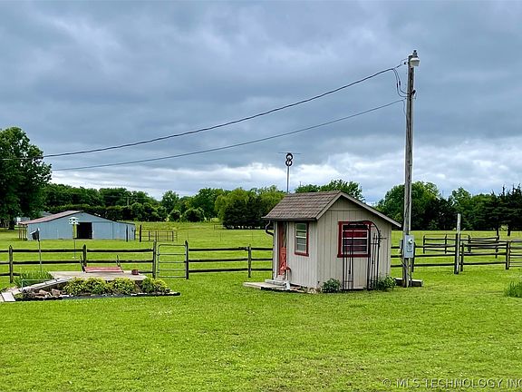 Country living- Stunning sunsets on 10 acres m/l. Charming 2/1 native stone home with hardwood floors, detached 3 car garage, 2 sheds, inground storm shelter, and generator. Horses permitted- 4 stall barn with storage. Located off Hwy 75 for a quick 15 min drive to downtown Tulsa, Utica Square, Owasso, or SKiatook Lake. Call this home or perfect for your custom built dream home. Home to be sold "As Is"