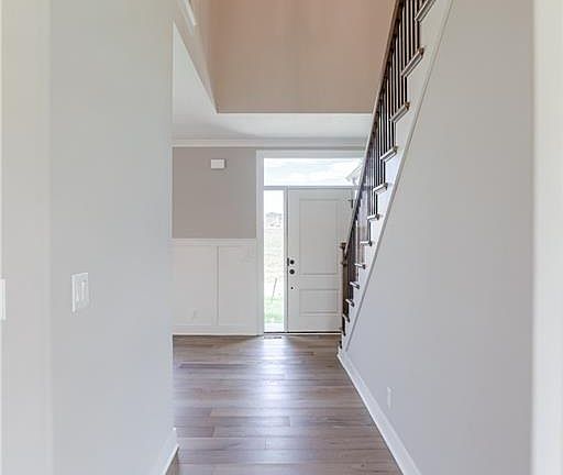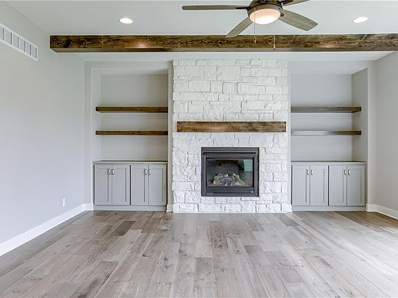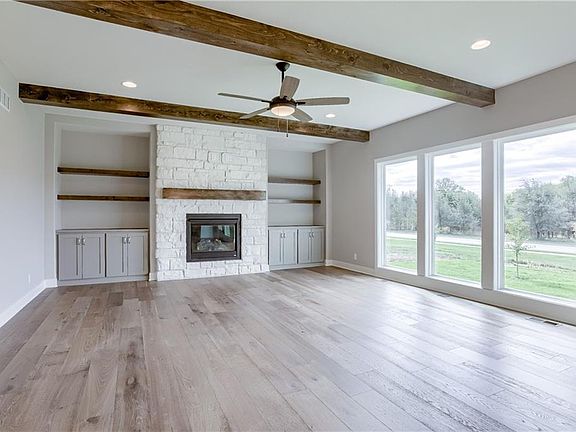 Who doesn't need more garage space?!? The Redbud II by SAB Construction in Benson Place Landing has A FOUR CAR GARAGE!! (The 3rd bay is tandem.) The open, yet defined spaces on the main level create a unique and cozy living space. From the ceiling beams in the great room, coffee bar in the kitchen, and wainscotting in the dining room/living area (flex room) this will be a special place to call home. Step out to the 14x12 covered deck for additional entertaining or a quiet evening admiring the gorgeous sunset. The owner's suite is large with a fabulous closet space that adjoins the laundry room. Customize the 4 car tandem garage to the space for your specific needs and interests - vehicle storage, additional storage space, a workshop, home gym, or rec area - making it a valuable feature for homeowners. You will enjoy the amenities offered in the subdivision that include 2 pools, splash park, park/playground with soccer goals, miles of trail and nature areas. Located close to I-435, I-35 and 152 Hwy. Be at KCI in 20 minutes. Square footage, taxes, Lot size, and all measurements are estimated.