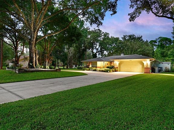 RARELY AVAILABLE: 1 ACRE POOL HOME WITH DETACHED GARAGE IN BRADEN PINES! Nestled in a lush, tropical setting this 3 bedroom, 2 bath, split plan home with a large 2 car garage (with a workshop!) awaits its new owners! From the sweeping semi-circular drive to the many outdoor living spaces will transport you to your own tranquil "peace" of heaven. Greeting your entry is a large stone, wood burning fireplace, a combination living/dining/family room, a view of the crystal blue pool through French doors, plantation shutters. To your left are two generous bedrooms and updated bath (vanity and granite counter). From the combination room is a large, eat-in kitchen with loads of cabinetry and French doors. The laundry/utility room, spacious master bedroom and master bath (updated vanity and granite counter, dressing area and private patio - for your private hot tub...), round out this home's floor plan. From the enclosed pool area is the dog park or little ones' fenced in yard, while opposite is a 23X16 pavered fire pit, grilling area. A delightful pathway takes you through more lush landscaping, fruit trees, tropicals, bird baths and feeders to the 30X40 detached, two car garage/garage apartment (roughly 600+ sq ft). A dedicated circular drive and parking services the addition. A separate parking pad with an elevated light pole and electrical outlet is also included. Please see attachments for a more complete list of improvements. NO HOA, NO CDD fees, NO DEED RESTRICTIONS!! Hurry to your new home!!